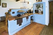 „Používám Primalex plus a přidávám tekuté barvy – modrou, hnědou, okr a trochu žluté. Nejdříve světlý odstín na stěny, potom sytější na pec. Na míchání barev používám s úspěchem vyřazený kuchyňský ruční mixér,“ prozradil nám. Kdo by v tom blankytu všechny zmíněné odstíny hledal!