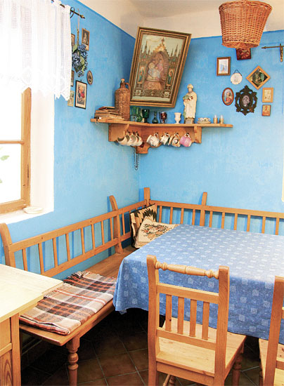 Ještě jednou Veletín, podkroví obytné části hospody; i sem se modrá velmi dobře hodí