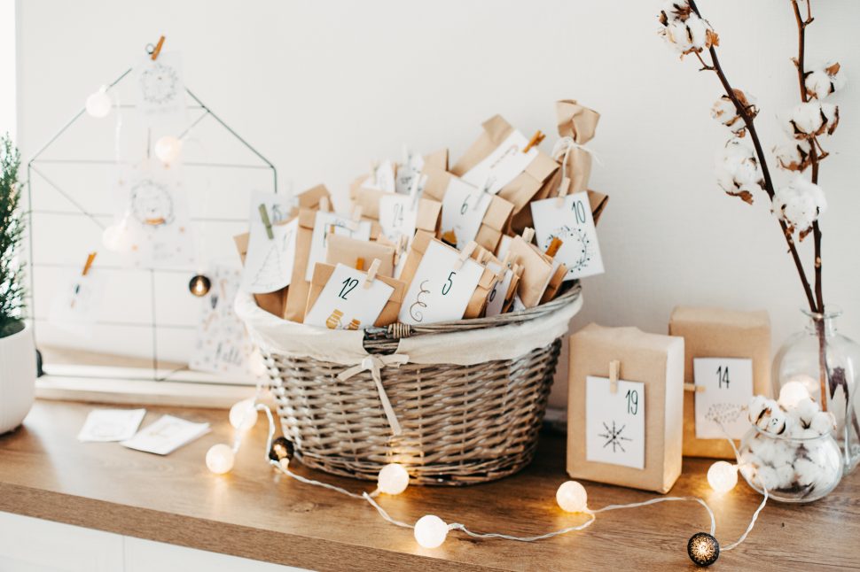 Košík s dárečky můžete odekorovat podle nálady třeba obrázky, světýlky nebo jehličnatými větvičkami. Foto: Shutterstock