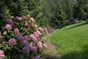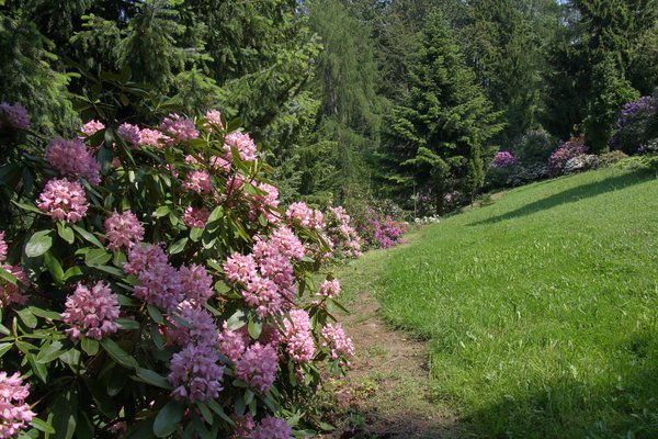 Díky klimatu a půdě se na zahradě mimořádně daří pěnišníkům, které v širokém okolí rostou i na divoko. Majitel je využil jako výplňovou výsadbu svého arboreta, zejména na osvěžení jeho dolní a střední části.