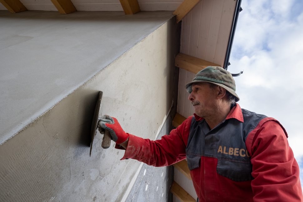 Osvědčená kombinace fasádních izolačních desek, omítky a perlinky izolaci zpevní a fasádu chrání před prasklinami a poškozením, foto: Weber