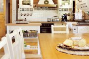 Nábytek ve světnici v druhé chalupě, kterou obývají majitelé, je kombinací probrušované bílé patiny a přírodně hnědého mořidla. Vyrobila firma Ná-byteček