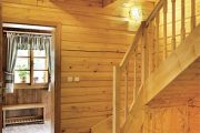 Naposledy procházíme chalupou. Jsme v chodbě, v přízemí. Sem se přichází ze studeného zádveří, které je zároveň průchozí chodbou do lyžárny. Z chodby vede schodiště do podkroví, ale i dveře do sauny a na záchod, do koupelny a komory. Posledními dveřmi s prosklením v horní části se vchází do velké obytné světnice, kde jsou kromě kuchyňské linky s pracovním ostrůvkem velká kachlová kamna s krbovou vložkou, pecí, plotnou na vaření a troubou na pečení. V jednom rohu místnosti stojí stůl s lavicí a se židlemi, kam se pohodlně vejde patnáct lidí. V druhém rohu je prostorné posezení s pohovkami u televize.
