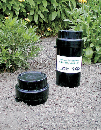 Elektronický odháněč OdK-H2 (Format 1) plaší především krtky a hryzce. Přístroj vydává přelaďované, nepravidelně dlouhé slyšitelné tóny s nepravidelně dlouhými přestávkami, které se šíří v půdě a neruší lidi na zahradě. Účinně působí na ploše asi 400 m2 a do vzdálenosti 10 až 12 m. Je vodotěsný, rozměry má 137 x 235 mm, napájí ho 6 středních monočlánků, jejich životnost je asi půl roku. *