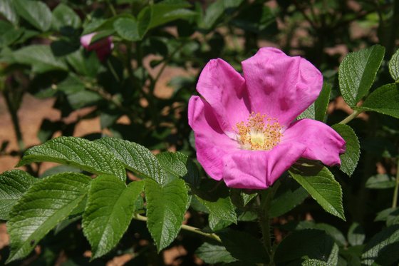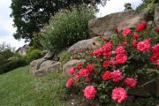 Vzrostlý růžový keř zasazený na vyvýšeném místě už dovede zajistit i stín