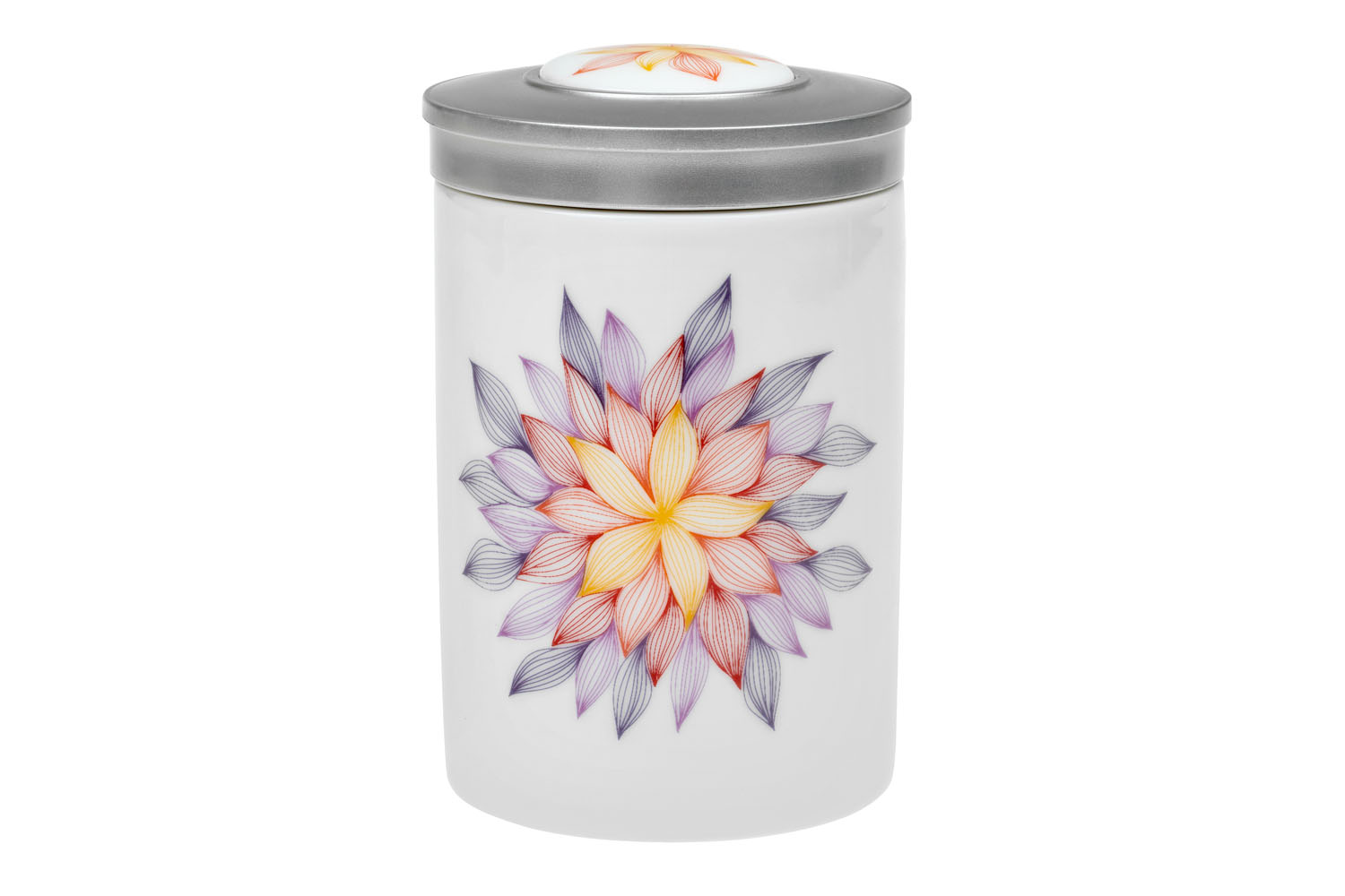 Porcelánové nádobí zdobí mandala naděje. Čajová miska je za 135 Kč, dóza s víčkem za 293 Kč.