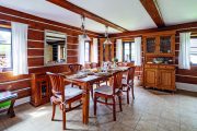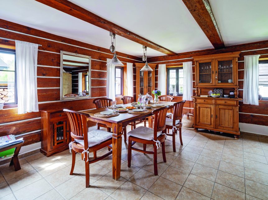 Jídelní stůl i židle ze sheeshamového dřeva tvoří centrum světnice, kde se kdysi malovalo sklo, foto: Tomáš Dittrich