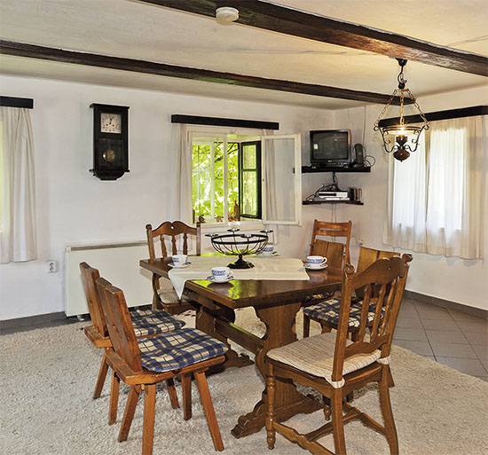 Po uvítací kávě jdeme projít interiéry. Hned v tradičně zařízené velké světnici, v níž je proti oknům moderní kuchyňská linka, člověk vnímá, že stavení neužívá jen Dostálova rodina. „Při koupi jsme si museli vzít velkou hypotéku,“ připomíná znovu Karel, který se ujal role průvodce. „Mysleli jsme, že přistavíme další místnosti v otevřené kůlně a budeme je pronajímat. Ale dopadlo to opačně. Když je zájem, pronajímá se celá chalupa. A až bude čas a peníze, přestavíme si kůlnu pro sebe,“ vysvětluje.
