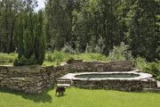“První skalka vznikala u chalupy. Na její výstavbu jsem použil metamorfované hadcové kameny,” vzpomíná majitel. “Jsou k nalezení v lese u obce Vinná, kde geologové dělali pokusné vrty, zřejmě na uranovou rudu. Tu a tam jsem umístil kamenná koryta, ta se kdysi všude válela po někdejších vysídlencích. O stavební kámen tu nebyla nouze, sváželi jsme jej z okolí, stavěli z něj suché zídky a v těch jsem pěstoval skalničky. Některé dřeviny jsou staré i 40 let, kdysi jsem je dostával k narozeninám.