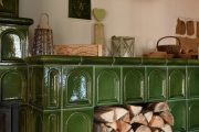 Základ nových kachlových kamen postavil pan Červenka z Jiříkova ještě dřív, než pan Mihalik položil smrkovou podlahu. „Držel se mého nákresu. Nad vložku umístil výměník, ze kterého jde teplá voda do radiátorů po celé chalupě. V koupelně proudí i do podlahového topení. Nižší část kamen, která vypadá jako pec, zasahuje až do kuchyně. Teplo v ní však už neproudí, je to dutý prostor, v němž se skladuje dřevo. Nahoře je pár drobností, k nímž mám vztah, a občas si tam hoví kočky. Tlapka, to je ta černá, a její dcera Šedivka.“