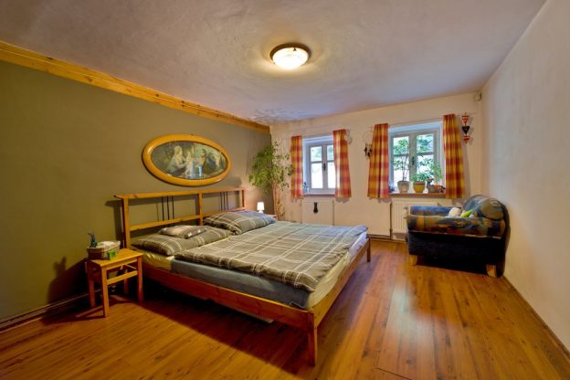 V chalupě zůstal veškerý nábytek po předchozích majitelích, ale ti noví si z něj nechali jen pár kousků: spížní skříňku a bílou skříňku, obě jsou v síni. „Něco ještě zůstalo na půdě a pár skříní jsem přesunul do penzionu, který je kousek pod chalupou. Dělám tam – vedle své práce v mateřské škole – správce,“ informuje Přemek z druhé strany o tom, že v obci zapustil kořeny trvale.