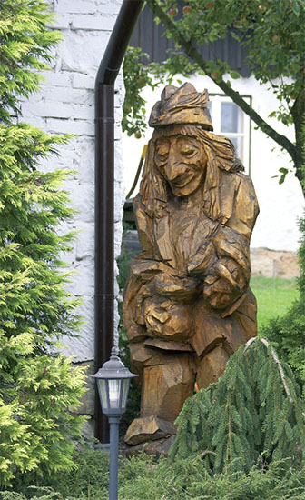 V chalupě pod Krkonošemi je útulno, je na ní vidět pečlivá ruka hospodáře. Má však navíc i velikou zahradu s galerií mohutných ze dřeva vyřezávaných znamení zvěrokruhu.