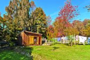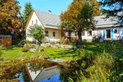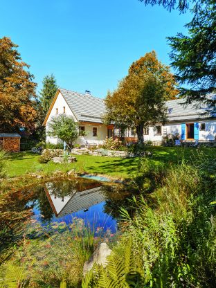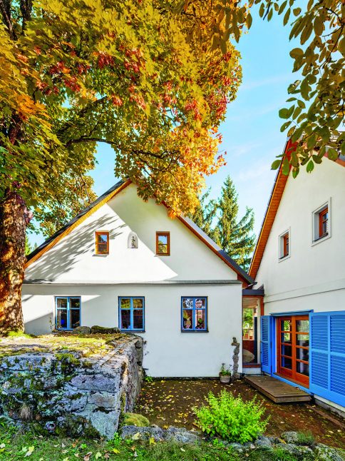 Česká Kanada u rakouských hranic je známá rozlehlými lesy, četnými rybníky, pískovcovými balvany a kopcovitým terénem. Když sem, do vesničky Nový Svět, přijela Ivana v 70. letech jako malé dítě s rodiči a sestrou, vedla kolem chalupy místo dnešní asfaltky jen písková cesta a lesů bylo podstatně méně. „Vypadalo to tu tehdy opravdu jako nový svět. Stálo tu asi dvacet chalup, v některých se ještě hospodařilo a chodilo se k sousedům třeba pro mléko,“ vzpomíná paní domu. Nedávno pátrala v archivech a zjistila, že jejich chalupa v roce 1850 ještě nestála, ale v roce 1870 se v ní už narodily děti. „Dnes máme spolek Česká Kanada – Nový Svět a nedávno jsme třeba opravovali křížek. Stále sem jezdí i potomci původních chalupářů, jako jsme my,“ dodává Ivana. Protože jde o chráněnou krajinnou oblast, kde se nesmí nově stavět, zůstala vesnička mimořádně malebná a působí, jako by se tu zastavil čas.