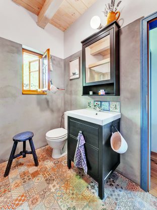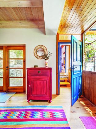 Modré dveře v nové části vyrobila moravská firma Poctivé dveře – stejná, která dodávala i do Národního divadla. Ve staré chalupě natřela Ivana dveře na žluto, aby rozjasnily interiér. Koupelny vznikly úplně nové, jedna z nich má dokonce lázeňská kamna – dole topeniště, nahoře zásobník na teplou vodu.
