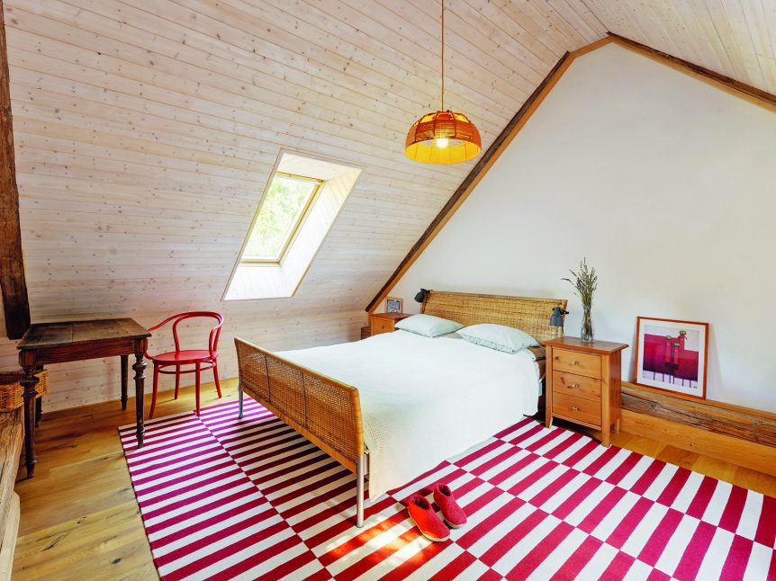 Rodina si jednotlivá zákoutí pojmenovává – třeba „Dědovy kameny“ jsou původní vazníky ve staré stodole, které od nepaměti staticky zajišťují stavbu. „Jozefův dvorek“, vydlážděný cihličkami, zase nese jméno po slovenském zeti, který jej vyskládal před svatbou. A malý úložný prostor pod schody se jmenuje „U Harryho“ – podle Pottera, samozřejmě.