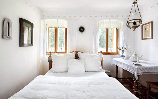 „Některé krajky a výšivky jsou staré i sto let a mnohé jsou už spravované.“ U Hany jsou však v dobrých rukou a vybělené a nažehlené dělají v chalupářské ložnici úžasnou parádu. „Ale jen když tu jsme,“ prozrazuje Hana. „Při každém odjezdu domů je opatrně svléknu, uložím a odvezu. V chalupě je vlhko, křehká plátýnka by tady trpěla.“