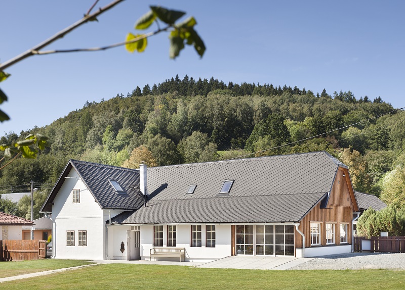 Při rekonstrukci krovu je samozřejmě také ideální možnost položit novou krytinu. Roman vybíral podle stylu podobných střech v okolí. „Rozhodli jsme se pro šablony Capacco šupinového vzhledu imitující břidlici, která v této oblasti na mnoha starých chalupách zůstala,“ vysvětluje. „Šablony jsou vyrobeny z recyklovaných plastů, ale vypadají velmi autenticky a jsou lehké, nezatěžují krov. A jejich cena je v porovnání s klasickou břidlicí mnohem příznivější.“