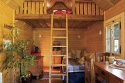„Výběr je ale mnohem širší,“ upozorňuje naše hostitelka. „Zájemce si může vybrat chatu s vikýřem, místo dřevěného obkladu zvolit omítku, na střechu dát třeba tašky. Mým přáním bylo patro na spaní, a protože jsem vysoká, chtěla jsem žebřík uprostřed.“