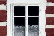 Toto okno je snůškou chyb: odsazeno od líce fasády, s falešným členěním a ještě vyklápěcí! Opravené štuky na fasádě a muškáty to bohužel nezachrání. Přitom je najdeme v naší jediné vesnické rezervaci UNESCO!