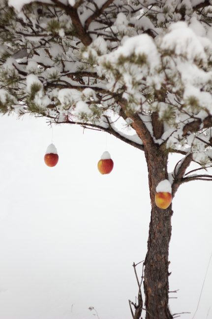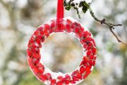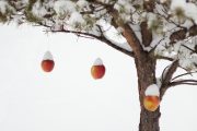 Zvolit můžete univerzální zimní dekorace jako věnce z jehličnatých větví, šlahounů psího vína, šišek, které pro vánoční čas stačí doplnit pro něj typickými symboly. Harmonickou energii do zahrady pak vnesou zvonkohry. Ty vyrobené technikou tiffany dodají i světelné odlesky vytvářející iluzi slunečních paprsků. V mrazivém počasí lze použít ledové ozdoby nebo svícny, jež si sami vyrobíte.