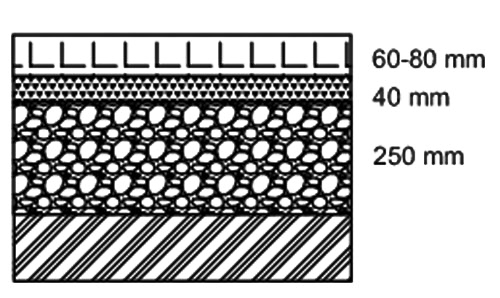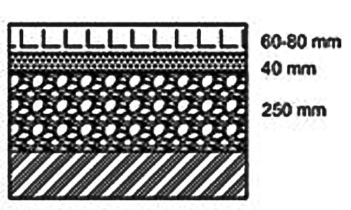 4. 150-200 mm – ochranná vrstva – kamenná drť 0-32 mm (betonový recyklát 8-63 mm)