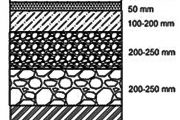 5. 200-250 mm – ochranná vrstva – kamenná drť 0-32 mm, 32-63 mm (případně směs, betonový recyklát 8-63 mm)