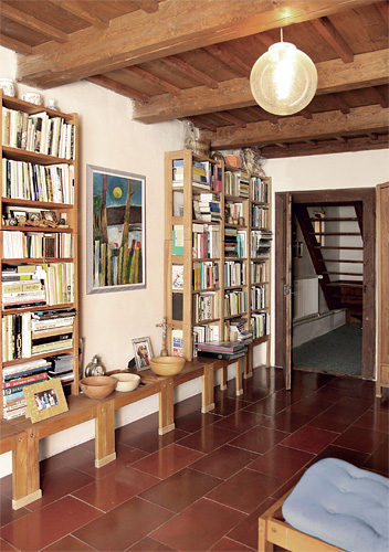 K renovovaným věcem samozřejmě majitelé přidali i několik moderních kousků – za všechny jmenujme konstrukčně i řemeslně zajímavou knihovnu vyrobenou z jilmu. Město tyto listnaté stromy muselo pokácet, protože dostaly grafiózu.
