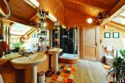 Navzdory normám, tloušťce trámů a velké ploše zasklení je v domě se třemi štíty velmi příjemně v létě i v zimě. Prvních zhruba patnáct let to ovšem stálo dost peněz. „Nejdřív jsme totiž topili stlačeným plynem. Nádrž byla v zahradě mezi břízkami, tam, co stojí sádrová husa. Ročně jsme za energie platili skoro osmdesát tisíc. Nejen za plyn, ale i za elektřinu, na kterou je tady kromě topení napojeno úplně všechno.“