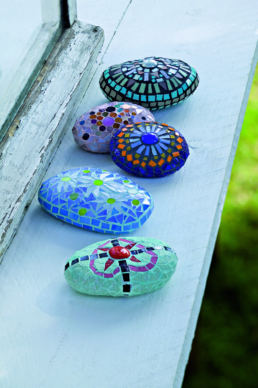Při tvorbě zahradních dekorací zdobených mozaikou vám poradí kniha Mozaika na zahradu z nakladatelství Anagram. Najdete v ní řadu nápaditých projektů s podrobným postupem, praktickými radami i nákresy ve skutečné velikosti. Například závěsné i zapichovací svícny, dekorační kameny, šlapáky do trávy, květináče, zahradní stůl apod. Cena je 50 Kč.