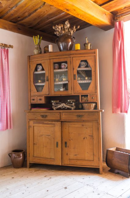 „Nábytek, který tady vidíte, jsme získali při bourání a likvidaci přístřešků u blízkého domova důchodců. Dali jsme ho dohromady z funkčních i rozbitých kousků,“ vzpomíná Libuše, která louhem pomalu zbavovala starého nátěru tyto vysloužilé kousky tak, až se z nich po opravách vylouplo vybavení pokoje.