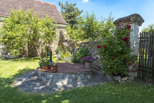 Dvůr je obehnán kamennou zídkou, za kterou zahrada pokračuje. „Tenhle pozemek jsme nejprve měli v nájmu,“ vypráví Jan. „Když se vrátil v restituci původním majitelům, podařilo se nám tuto část zahrady dokoupit.“ Ve vsi není kanalizace, proto tady našla místo i dřevěná budka pro suché WC.