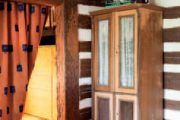 Ještě než se vydáme do patra, hostitelé nás upozorňují, ať si na schodech i při vstupu do horních pokojů dáváme pozor na hlavu. Hodně nízké dveře tu rády rozdávají boule.