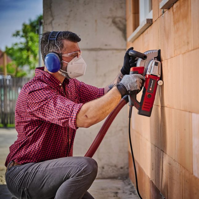 Přístroje tohoto typu jsou vybaveny systémem odsávání prachu, což je důležité, protože jde vždy o extrémně prašnou práci. Použít sice můžete i ruční sekáč, sekací kladivo, případně úhlovou brusku, ale ve srovnání s nimi je frézka této práci „šitá na míru“, a tudíž i rychlejší, bezpečnější a méně prašná. I s ní si ale chraňte obličej i oči a případně použijte roušku nebo respirátor proti prachu.