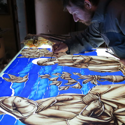 Sklářský výtvarník musí ovládat různé styly malby, aby dokázal napodobit vitráže z jakéhokoliv období, foto: se souhlasem Uměleckého sklenářství Jiřička–Coufal