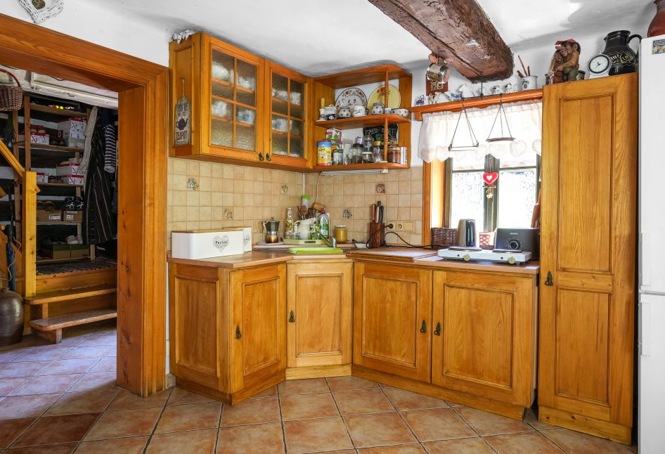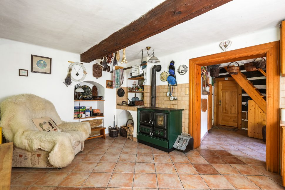 Roubené patrové stavení s podélnou pavlačí bylo postaveno přibližně před dvěma sty lety. Dispozice je podobná jako kdysi, jen místo černé kuchyně vznikla koupelna s toaletou a špýchary v patře slouží namísto uskladnění potravin jako útulné ložnice. Chalupa je dnes chráněnou kulturní památkou a majitelka s rodinou jí věnují náležitou péči. Skoro se nechce věřit, že i tahle krásná roubenka měla před lety namále. „Když jsme sem přišli, vše bylo v dost dezolátním stavu – část střechy a pavlače byla poškozená po pádu stromu, chyběl plot, dřevěné trámy se skrývaly pod nánosem omítky a dřevěnými podlahami prorůstal plevel, takže to bylo takové úsměvné. Když jsme tu chtěli přespat, škvíry kolem oken jsem provizorně ucpávala vším možným,“ vzpomíná Helena na začátky svého chalupaření na Kokořínsku. Náročná rekonstrukce proto probíhala postupně, v souladu s rodinným rytmem a možnostmi.