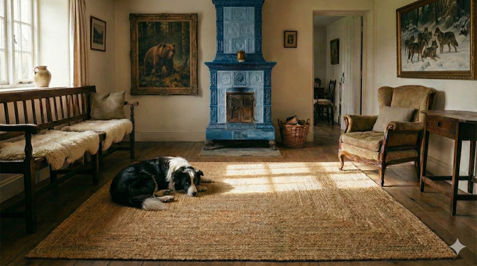 Juta má i jednu skrytou superschopnost. Umí totiž přirozeně regulovat vlhkost v místnosti. Je to jakási malá přírodní klimatizace – když je ve starém stavení po dešti vlhko, juta ho do sebe trochu nasaje, a jakmile zatopíte v kamnech, zase jej uvolní. Jen pamatujte na to, že juta a velká voda nejsou zrovna nejlepší kamarádi, takže koberce nepokládejte do koupelny nebo na nezastřešenou verandu, kam občas zaprší. Tam si pořiďte raději imitace, to znamená koberce se vzhledem juty, vyrobené třeba z polypropylenu – takovou podlahovou rohož pak můžete intenzivně čistit vodou. Stačí ji postříkat hadicí nebo jinak očistit mokrou cestou a vysušit.