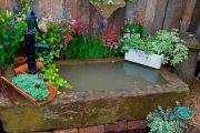 Jindy stačí málo – žlaby a napáječky na zahradě naplnit vodou. Z těch menších budou praktická ptačí a hmyzí pítka, z větších minijezírka. Při dostatečné hloubce se v nich bude dařit i některým drobnějším vodním rostlinám. Do pítek můžeme přidat i jeden dva oblé kameny, které budou částečně vyčnívat nad hladinu a usnadní tak hmyzu, motýlům a ptáčkům přístup k vodě. Vodu, která se odpaří, průběžně doléváme. Z drobnějších korýtek, u nichž odstraníme jednu krátkou boční stranu, se dá sestavit u jezírka nádherná vodní kaskáda.
