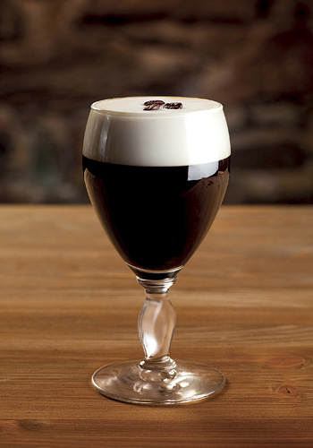 Zahřejeme irskou whiskey se dvěma lžičkami třtinového cukru a horkou nalijeme do nahřáté skleničky na stopce. Přidáme horkou kávu asi 1 cm pod okraj a nakonec jemně našlehanou, ještě tekutou šlehačku.