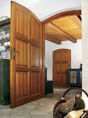 „Ano, zdi jsou tady křivé, v kuchyni to třeba dělá od jednoho rohu ke druhému třicet centimetrů,“ prohlásila majitelka: „Ale nám to ani v nejmenším nevadí. Také jsme si prosadili, aby v předsíni na jedné zdi byly vidět krásné původní kameny.“ Ne že by to zedníci měli lehké. Jedna čelní zeď sice pevně seděla na skalním podloží, zato druhá končila v hlíně půl metru nad úrovní podlahy, musela se tedy podepřít armovaným betonem. Na stávající zdi se nasadil věnec z prefabrikátů a místo původních zvetšelých trámů se stropy podložily traverzami. Obojí představovalo vzhledem k nerovným zdem atypický úkol. Krovy nebyly v nejhorším stavu, ale nestačilo jen vadné části vyměnit za nové. Dnešní předpisy jsou přísnější, proto se muselo dost krokví doplnit, aby konstrukce měla předepsanou nosnost. Málo platné, dnes kryje střechu Česká šablona a ta něco váží.