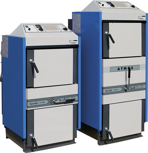 Zplyňovací kotle Atmos Kombi C 18 S a C 20 S mají dva rošty a jsou uzpůsobeny pro topení dřevem a hnědým uhlím zvlášť, nebo i najednou.