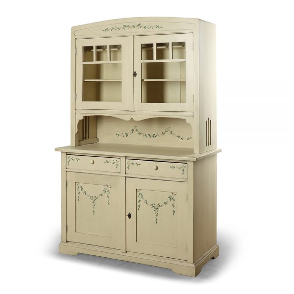 Na přelomu 19. a 20. století se na venkově uplatňuje také vliv secese. Typické jsou prosklené horní skříňky se zaoblenými tvary, rostlinnými řezbami či leptaným sklem. Secesní vliv se projevuje i ve výběru barev: tóny lomené bílé, pastelové odstíny, někdy i zelená či tyrkysová. Přestože městský secesní nábytek býval složitě konstruovaný a drahý, na venkově se používala zjednodušená forma, často jen náznak secesní linie v řezbě, kování nebo motivu ozdobného detailu.