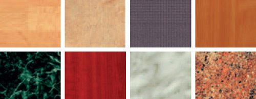 Nejrozšířenější a také nejlevnější jsou desky s HPL laminátem. Jsou vysoce odolné vůči mechanickému poškození, neporézní a nabízejí se ve velmi široké škále dekorů. Protože se pro design desek používá fotografie, lze vytvořit jakýkoliv dekor. Nejvíc se využívá motivů, jako je dřevo, kámen, kov, i různých Povrchy desek mohou být hrubé, hladké, lesklé i matné.