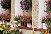 A jak už bylo řečeno, není nutné zůstávat při zemi. A to doslova. Květináče, mísy, kyblíky, košíky a další přenosné nádoby se zelení se pokusíme dostat i do vyšších pohledových partií. Pomoci si můžeme k tomu určenými květinovými stojany ve tvaru nižších či vyšších schůdků nebo štaflí. Jednotlivé police pak zaplníme nejen květináči, ale i dalšími ozdobnými předměty – kamínky, miskami s mušlemi, dřevěnými a keramickými plastikami.