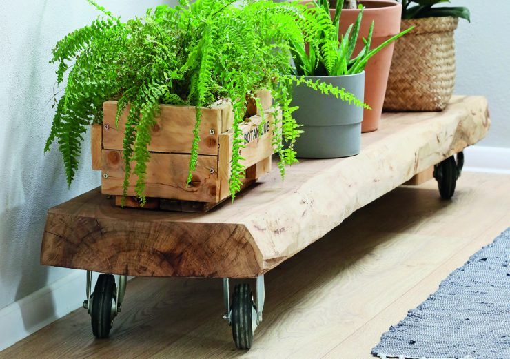 Základ této lavičky (či pojízdné poličky) tvoří staré, dobře vysušené dřevo. Nejlépe ji využijete v místnostech s nízkým stropem, kde si z ní můžete udělat praktický odkládací doplněk.