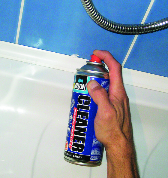 V koupelně nepůsobí hezky zčernalé silikonové těsnění vany, sprchového koutu, toalety a dalšího sanitárního vybavení. Sanitární silikony, kterými je většina tohoto vybavení utěsněna, jsou vyráběny s protiplísňovými přísadami, které však po čase přestanou fungovat a plísně (černé skvrny) začnou vystupovat na povrch spár. Bělení za pomocí prostředků obsahujících chlór je většinou za vršeno odstraněním silikonu a novým zatmelením. Pokud se k tomuto kroku rozhodnete, doporučujeme se již silikonům vyhnout a po užít MS polymery bílé barvy (BISON POLY MAX). Tyto nové materiály neobsahují žádné přísady, jsou přirozeně odolné plísním a ani po letech se v nich nevyskytují černé skvrny. Práce s nimi je téměř stejná, jako se silikony, ale výsledek je dlouhotrvající. Doporučujeme při práci použít krycí pásku.
