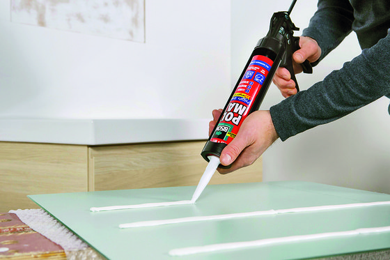 Při lepení je vždy velice důležitá kvalita podkladu, aby se nám nestalo, že lepidlo bude na zrcadle perfektně držet, ale vytrhne se nekvalitní, nezpevněná omítka. Při lepení zrcadel musíme dát pozor na to, aby nám lepidlo nepoškodilo zadní stříbrnou stranu zrcadla. Takzvané MS polymery jsou vynikajícím lepidlem i tmelem v jednom (BISON POLY MAX). Mají vysokou počáteční adhezi (pevnost), takže i těžší předměty ihned drží. Na hladkých podkladech, jako jsou kachličky, doporučujeme předměty fixovat proti sesunutí.