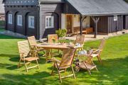 Teak je výjimečně pevným, trvanlivým a odolným materiálem, který skvěle zvládá celoroční vystavení venkovním podmínkám. S přehledem odolává střídání teplot a vlhka, slunečnímu záření, škůdcům i kyselým dešťům. Ošetřovat ho můžete vhodným olejem pro daný typ dřeva.