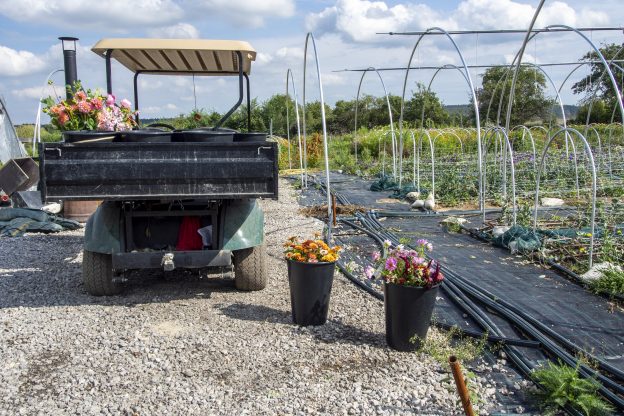 Od půl deváté ráno se tady práce nezastaví: připravit seznamy na sběr květin, vyjet s vozíky k záhonům a pak ihned do chladné vazárny, připravovat kytice pro zákazníky, e-shop, svatby či květinové předplatné, což je velmi oblíbený produkt na webových stránkách. Klient si předobjedná čtyři, šest či dvanáct pugétů a je jen na něm, kdy si je nechá přivézt domů.