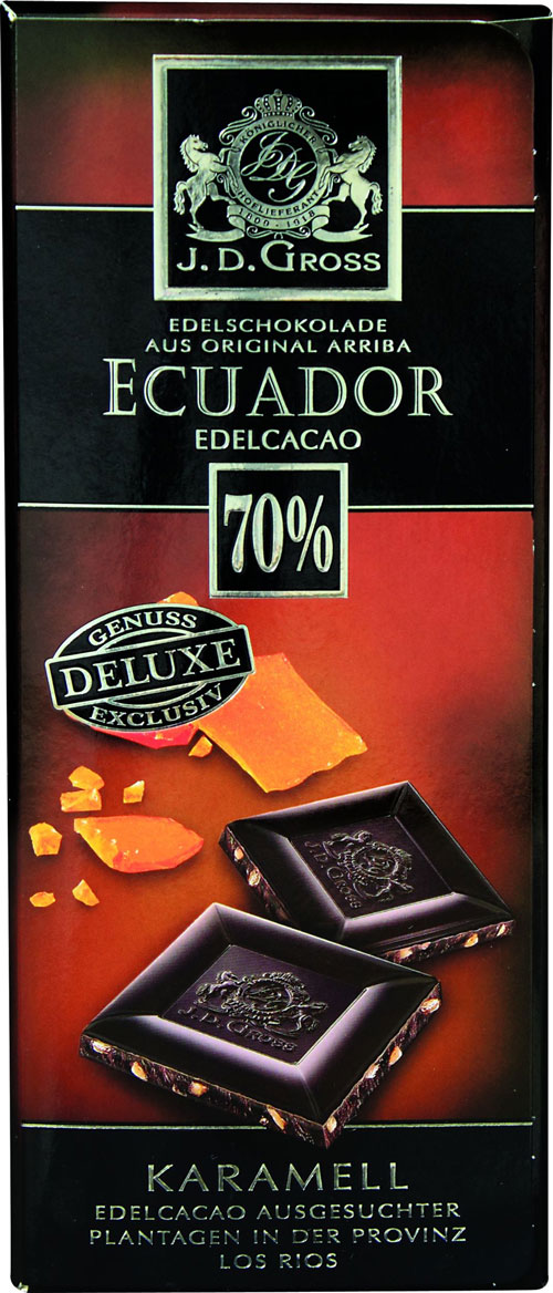 Někdo dává přednost tabulce čokolády. Pokud se vám ovšem klasická hořká čokoláda zdá příliš všední, vyzkoušejte některou z čokolád J. D. Gross s příchutí. Tyto čokolády se pyšní obsahem 70 % kakaa a vyrábí se ve třech variantách. Kouzlo léta připomíná čokoláda s kousky malin, milovníky exotiky potěší chuť pomeranče. Třetí variantou je čokoláda s 15 % karamelových křupinek. Čokolády J.D. Gross s vysokým obsahem kakaa jsou za 39,90 Kč (125 g).