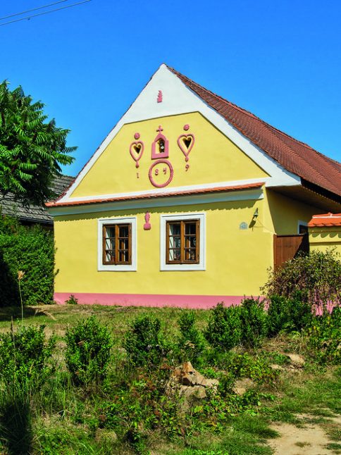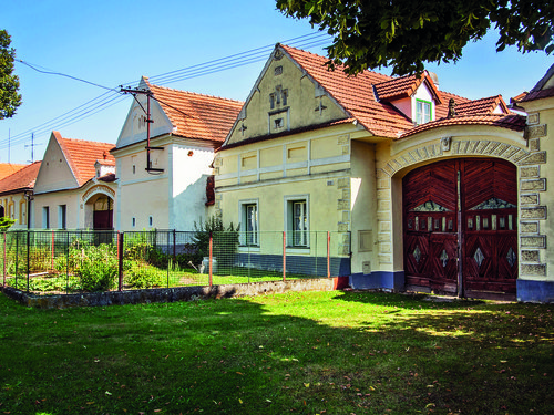 Mezi ozdobami na zdejších fasádách najdete snad všechno: srdíčka, čtyřlístky, hvězdy, stromy života, tulipány, křížky, věnečky, střapce, kytičky… Ocitli jsme se totiž ve vesnici, pro které jsou honosné štíty statků typické.